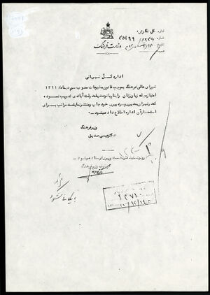 Publication permit for Zaban-i zanan, 4 March 1944. Sadiqah Dawlatabadi Collection. Women’s Worlds in Qajar Iran Digital Archive. Middle Eastern Division, Widener Library, Harvard Library
